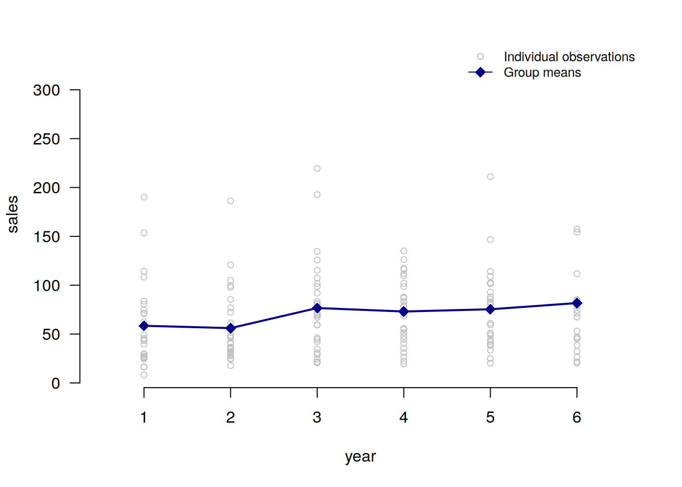 plot_heterogeneity(production, select = "sales", group = "year")